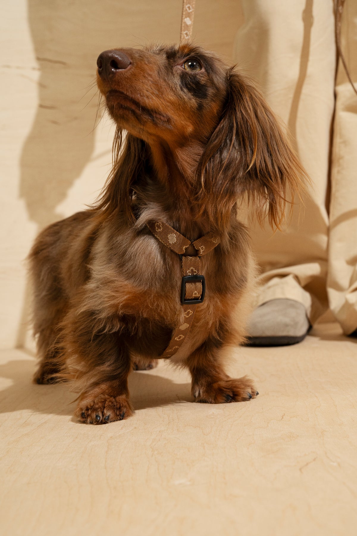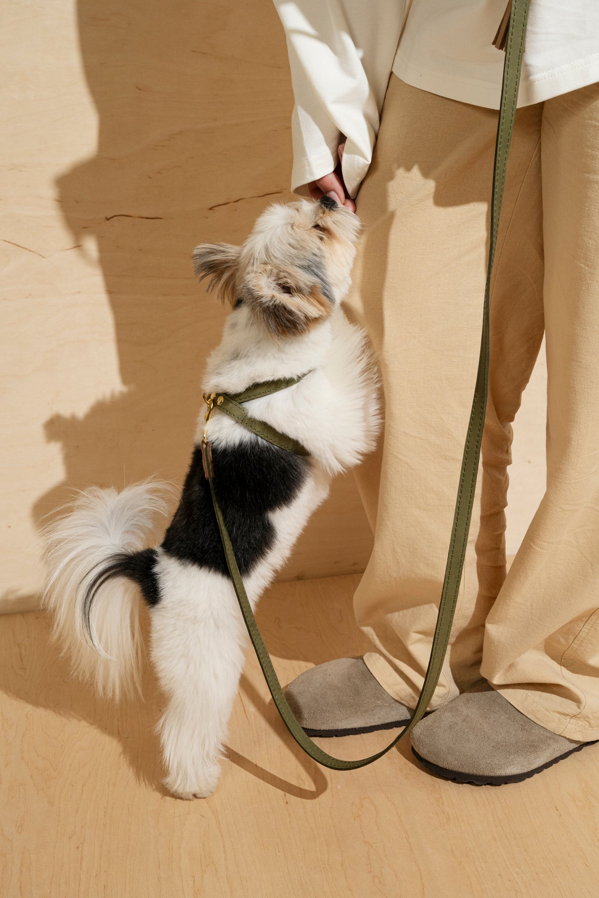 The light-weight leash is suitable for cats and small dogs under 4 kg. The light-weight whole leather harness is suitable for cats and small dogs under 4 kg. The neck and chest girth are adjustable separately.